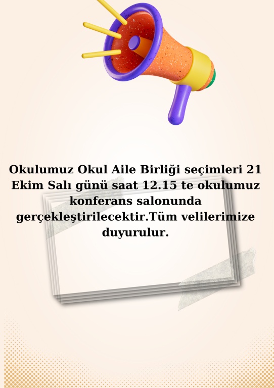 Okul aile birliği seçimleri 21 Ekim Salı günü saat 12.15 te gerçekleştirilecektir.
